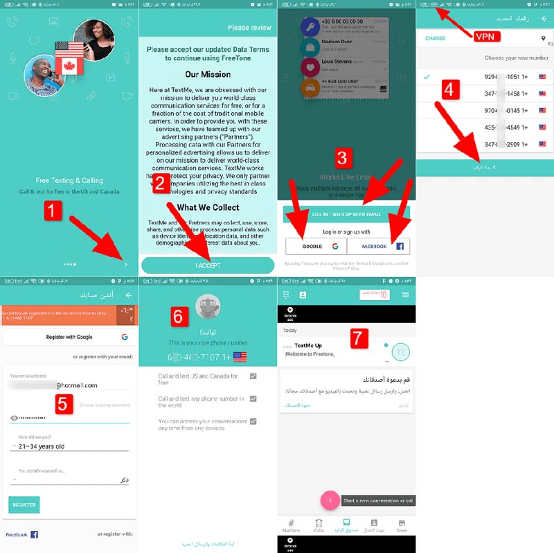الحصول على الرقم الامريكي رقم الواتساب وهمي مجاني Text Free تواصل لأجل سوريا