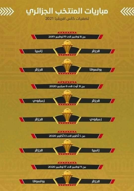 جدول موعد مباريات المنتخب الجزائر في تصفيات كاس العالم 2022 Youtube