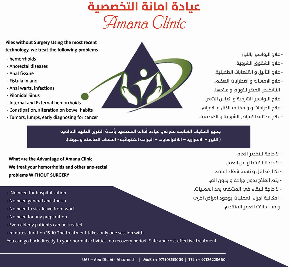 عيادة أمانة التخصصية لعلاج البواسير بالليزر العيادة الاولى لعلاج البواسير و امراض الشرج