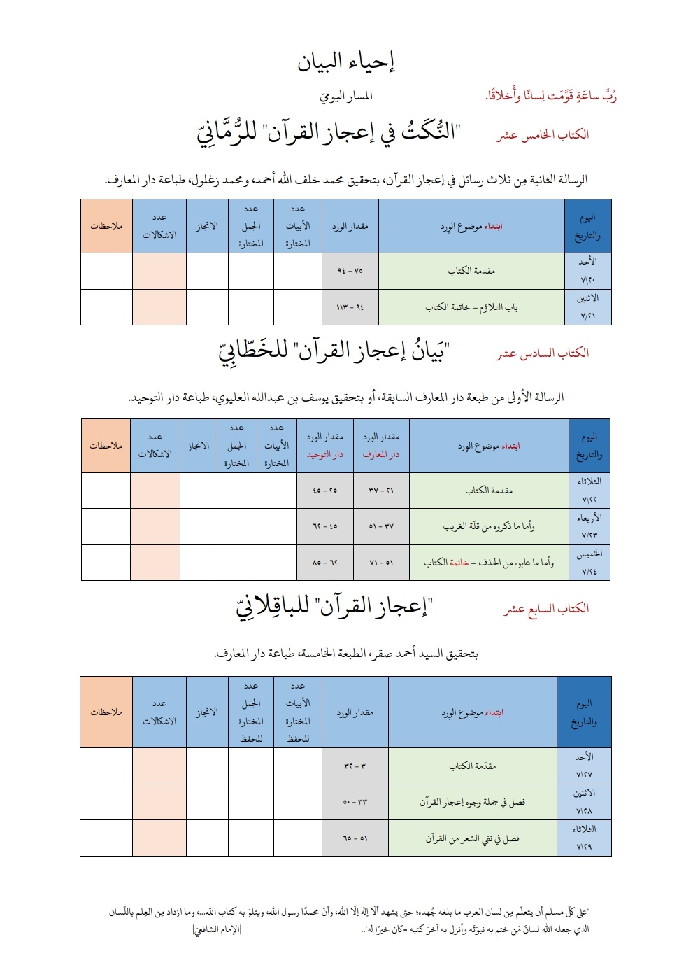 إح ياء الب يان On Twitter باسم الله محيي البيان منزل القرآن سنبدأ بإذن الله يوم الأحد ٧ ٢٠ في المسار اليومي بقراءة خمسة كتب النكت في إعجاز القرآن للرماني بيان إعجاز