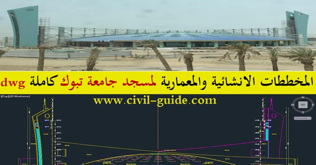 المخططات الانشائية والمعمارية لمسجد جامعة تبوك Dwg بالمملكة العربية السعودية