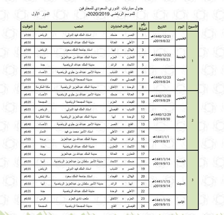 جدول مباريات دوري عبداللطيف جميل 2015 2016 Pdf الدوري السعودي