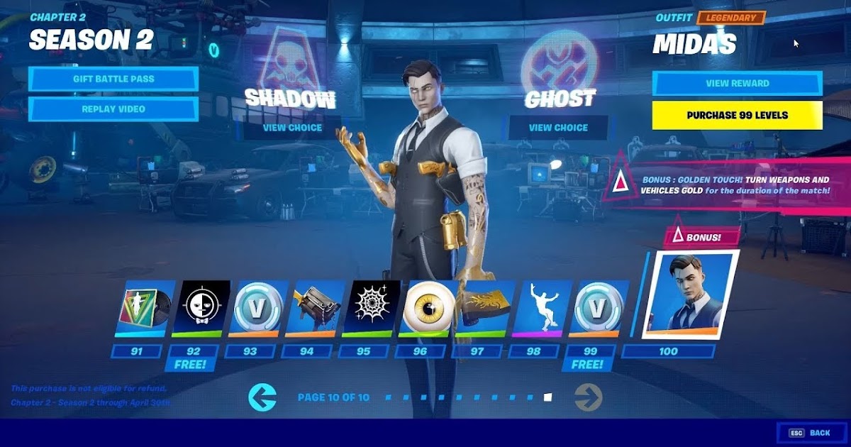 فورت نايت تحديات وجوائز مهمة Midas للموسم الثاني من الفصل الثاني Millenium