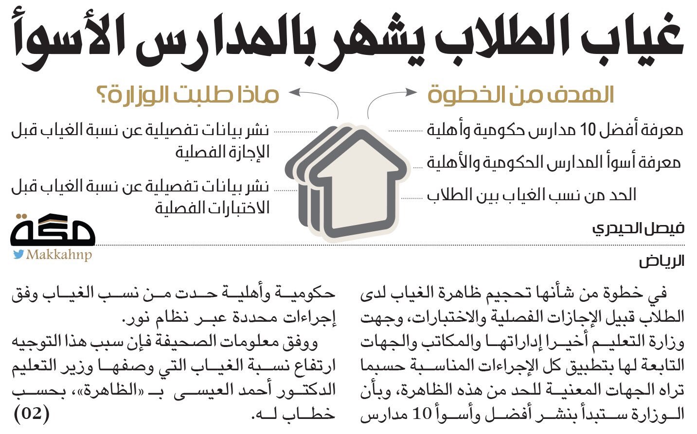 شبكة معلمي المملكة على تويتر وزارة التعليم تتجه لتوجيه إداراتها بنشر بيانات المدارس والأفضل والأسوأ من حيث نسب غياب الطلاب في خطوة للحد منه