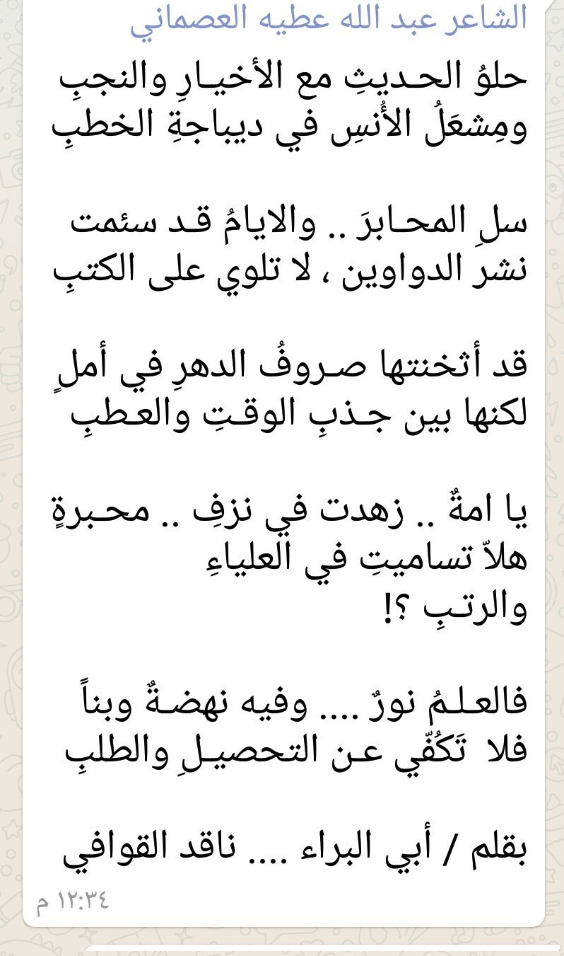 Abuzkiابو زكي On Twitter ابيات من قصيدة الشاعر ناقد القوافي ابو البراء Nagid4404 فالعـلـم نور وفيه نهضـة وبنا فلا ت ك ف ي عـن التحصيـل والطلب بقلم أبي البراء ناقد القوافي Https T Co Ujnjieq8wo