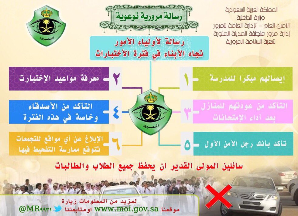 أخبار منطقة المدينة المنورة On Twitter مرور المدينة يوجه رسائل توعوية لأولياء الأمور في فترة الاختبارات