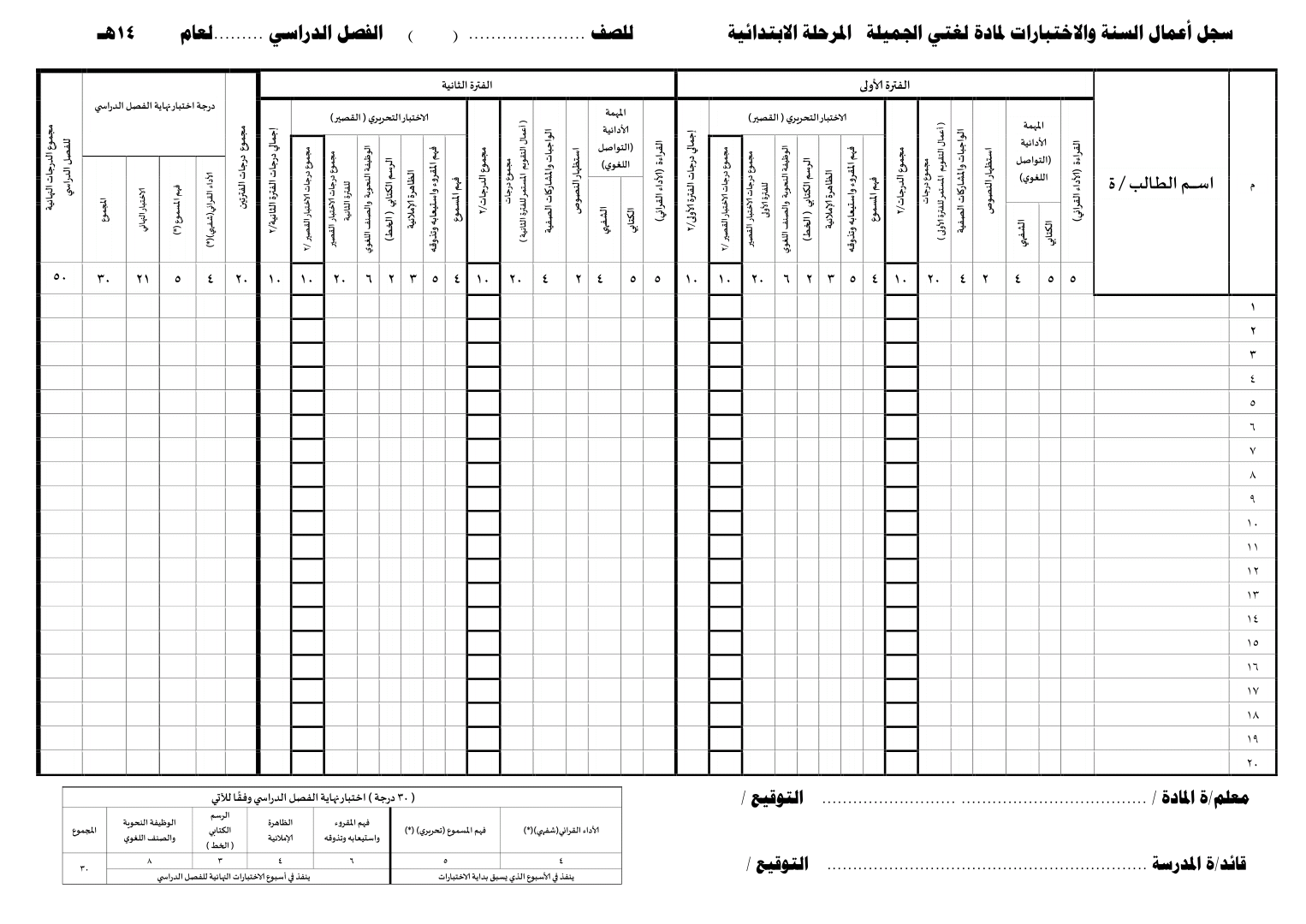 سجل اعمال السنة للمرحلة الابتدائية 1441 موقع المحيط