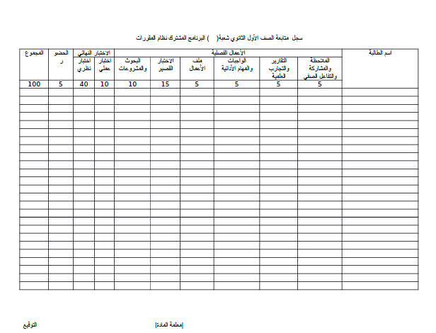 أوراق سجل متابعه الصف الأول الثانوي البرنامج المشترك نظام المقررات جديد 1441هـ 2020 م نموذجين Word Pdf منتدى التعليم توزيع وتحضير المواد الدراسية