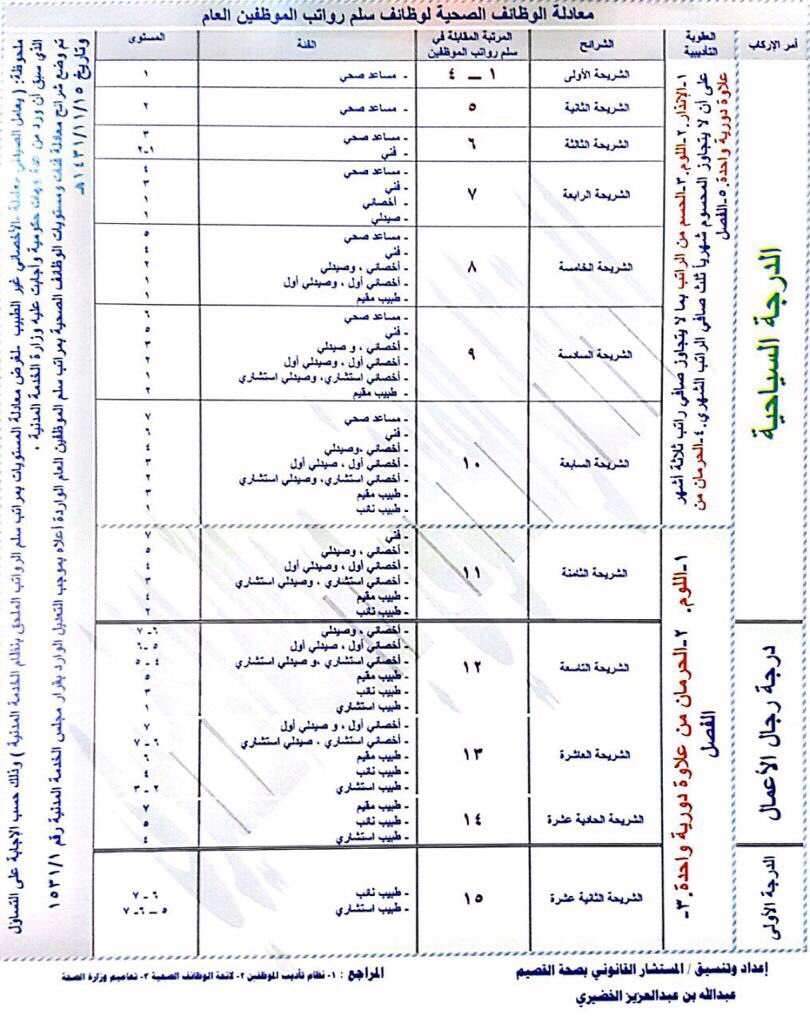 الكادر الصحي العسكري سلم رواتب لائحة الوظائف الصحية 1 حسب الأمر الملكي 25 6 1432 هـ