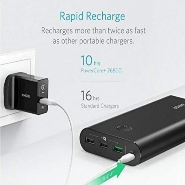 شاحن انكر 26800 المطور. يتميز شاحن شاحن أنكر باوركور 26800 anker powercore بوجود سطح خارجي من الألمونيوم لذلك يبدو أثقل من معظم الأجهزة الأخرى وهو أمر جيد من حيث المتانة ومقاومة الحرارة فيتحمل الصدمات والحرارة وبالرغم من امكانية توصيل عدد من الأجهزة وشحنها في نفس الوقت فإنك لا تشعر بسخونة. شاحن متنقل القوة 26800 امبير المطور ٣٢٠ ر س متوفر الآن شاحن امبير٢٦٨٠٠ المطور يشحن٩مرات سعره ٣٢٠ ريال التوصيل٣٠ ريال نسعد بتواصلكم على الدايركت أو الواتس. شاحن أنكر المطور الأصلي آيفون سامسونج شاحن من شركة انكر أيفون سامسونج ورأس شاحن سريع 18w معتمد من الآيفون والأندرويد ضمان سنتين يوجد استيكر الوكيل ركن الشريف وكذلك استيكر السريل نمبر serial num مصنوع من.