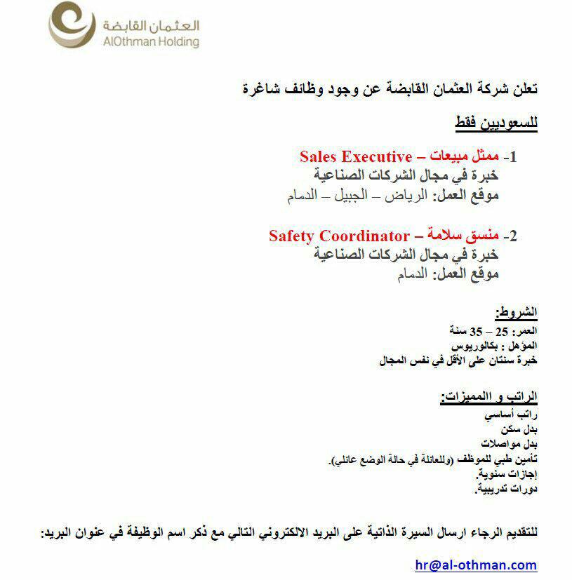 السعودي للتوظيف وظائف شاغرة في شركة العثمان