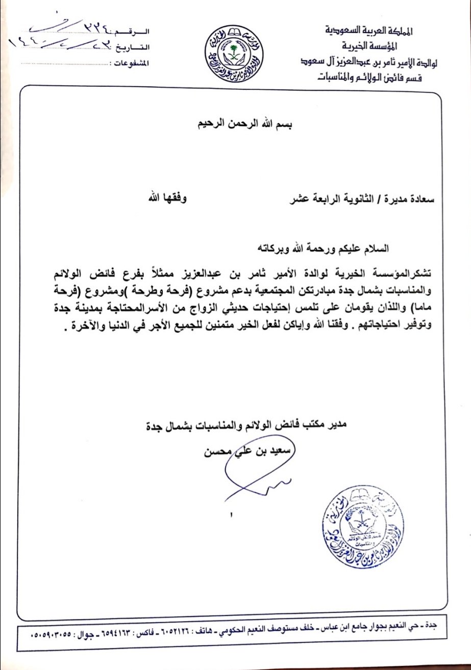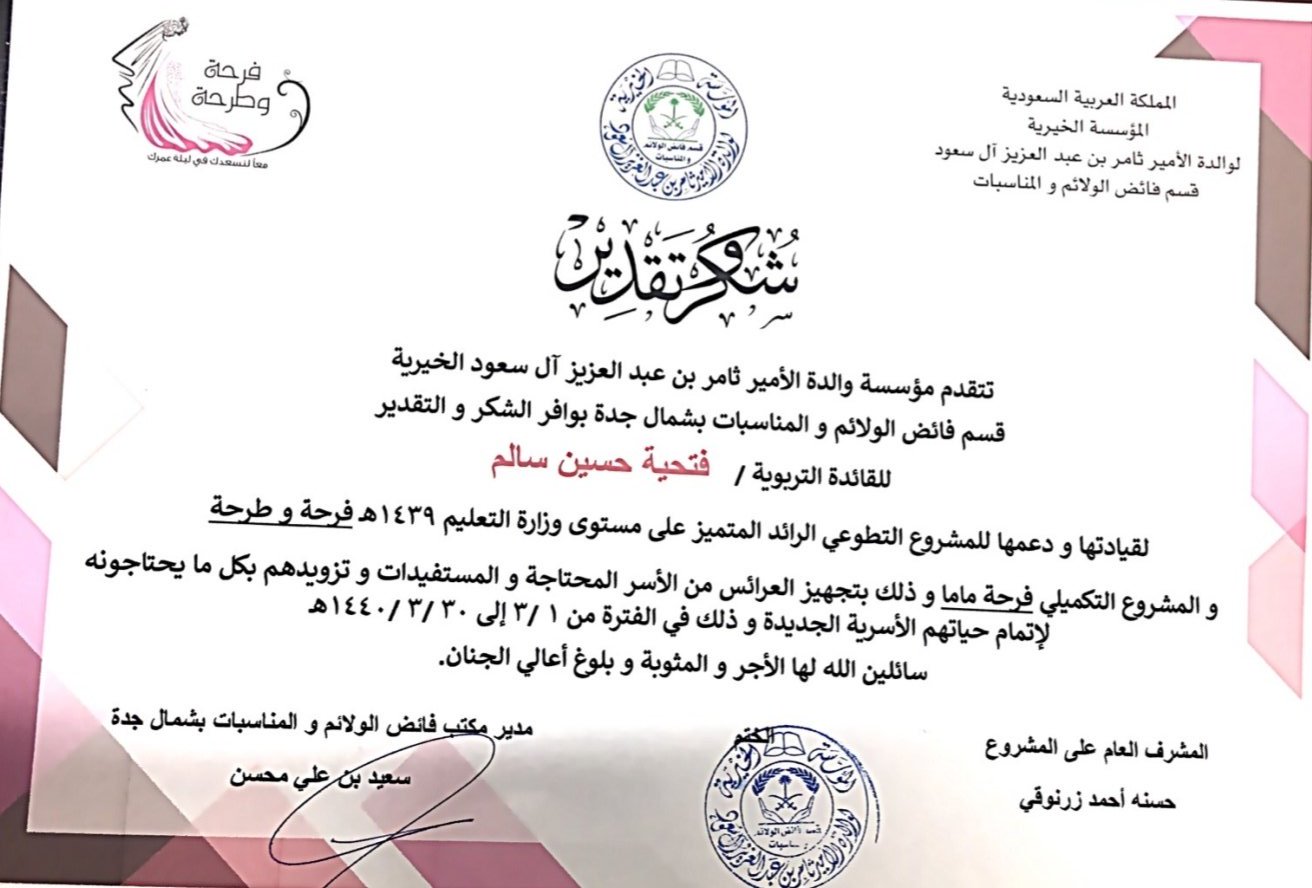المدرسة الرابعة عشرة الثانوية On Twitter تتقدم مؤسسة والدة الأمير ثامر بن عبد العزيز الخيرية بوافر الشكر و التقدير للثانوية ارابعة عشر و قائدتها أ فتحيه حسين لدعمها المشروع التطوعي المتميز على مستوى
